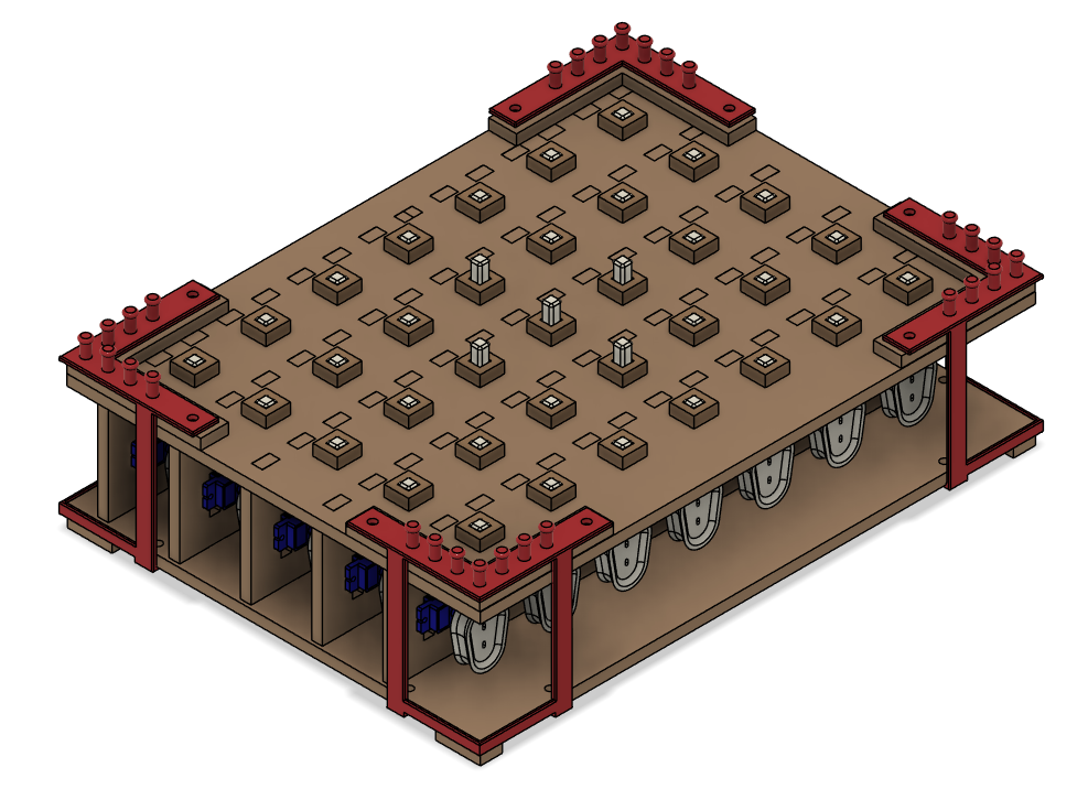 - Cam Design: The cams have a 1.5" pitch radius to achieve the 4 distinct height levels. This necessitated a pin spacing of 1.6 inches, creating a coarse but intelligible grid for palm-based interaction.