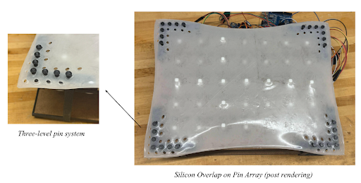 - Silicone Interface: To bridge the gap between discrete pins and a continuous image, the team designed and fabricated a Smooth-On Ecoflex™ 00-30 silicone overlay. The surface was coated in cornstarch to reduce friction and utilized a 3-level tensioning system to optimize tactile transmission.