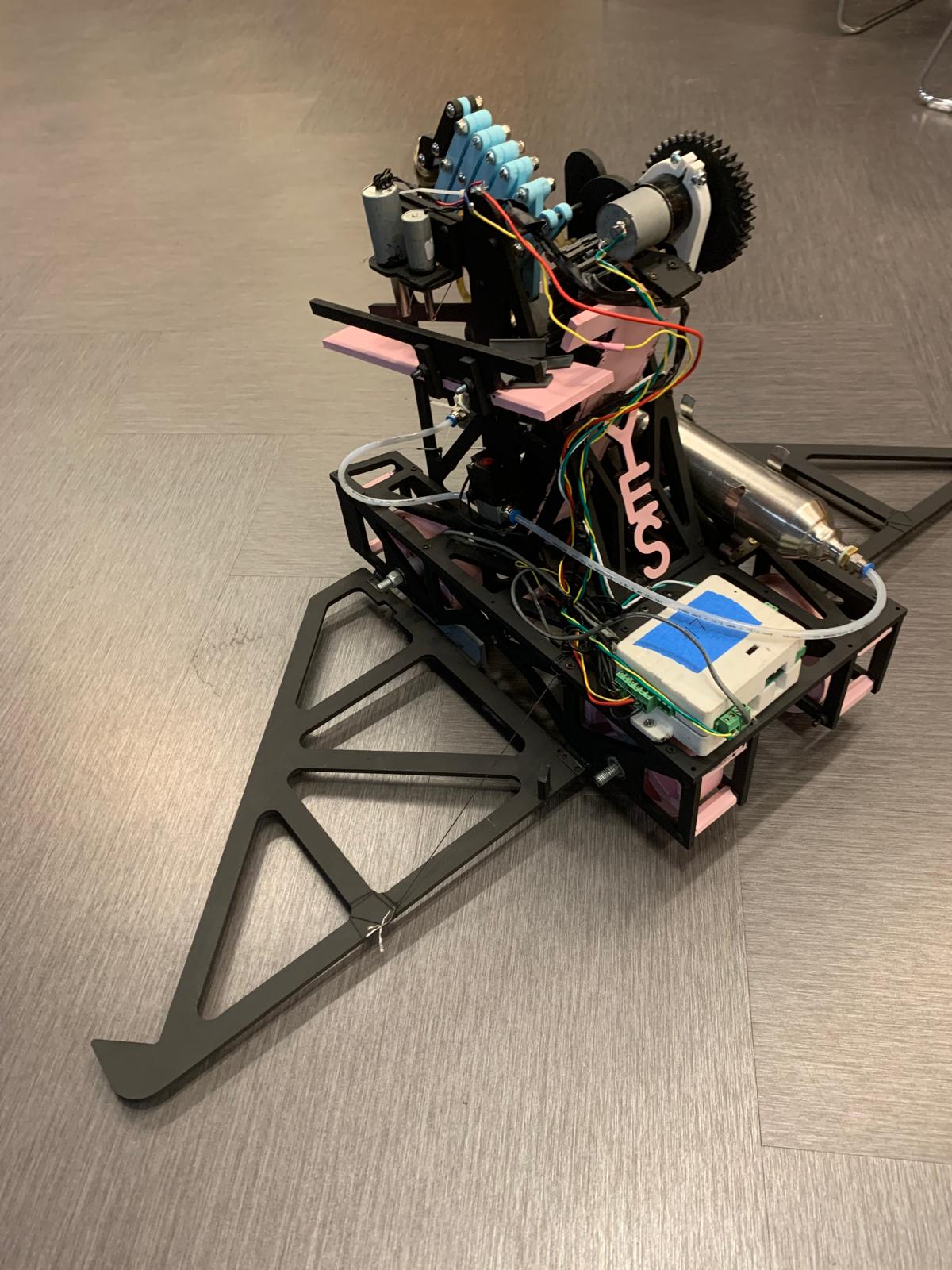 We avoided using extra motors for the defensive "wings" by integrating their deployment with the drivetrain.