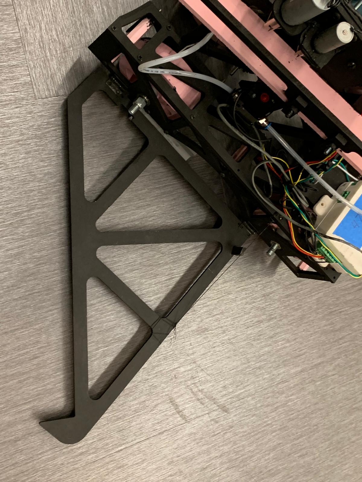 - Mechanism: Large MDF wings were hinged to the chassis side. A small extrusion on the wheel hubs "nudged" the wings open as the robot drove forward, allowing gravity to lock them into full extension.